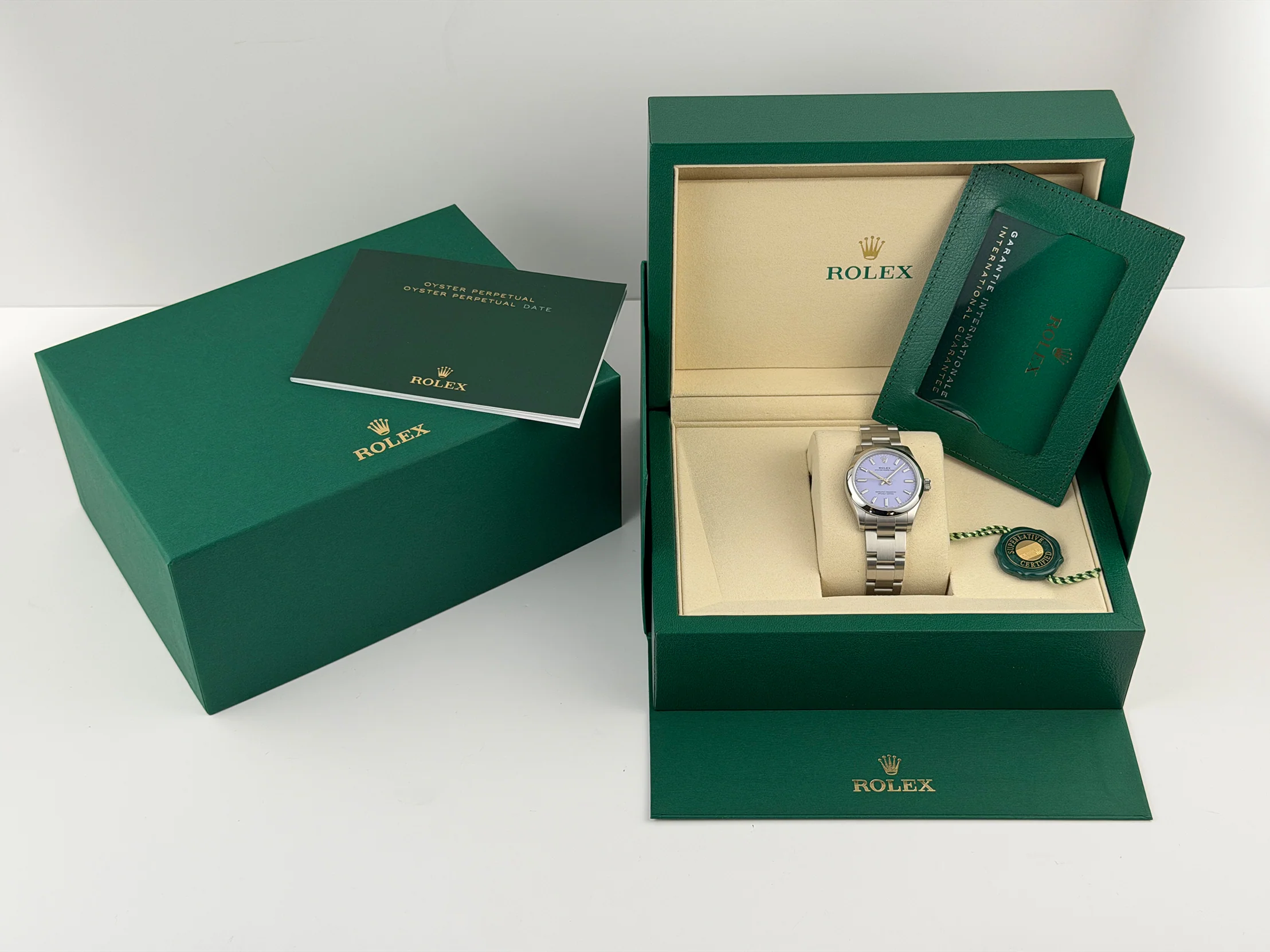 Time is displayed on the 2025 newly released lavender dial that is accompanied by luminescent filled hands as well as luminous hour markers.Â